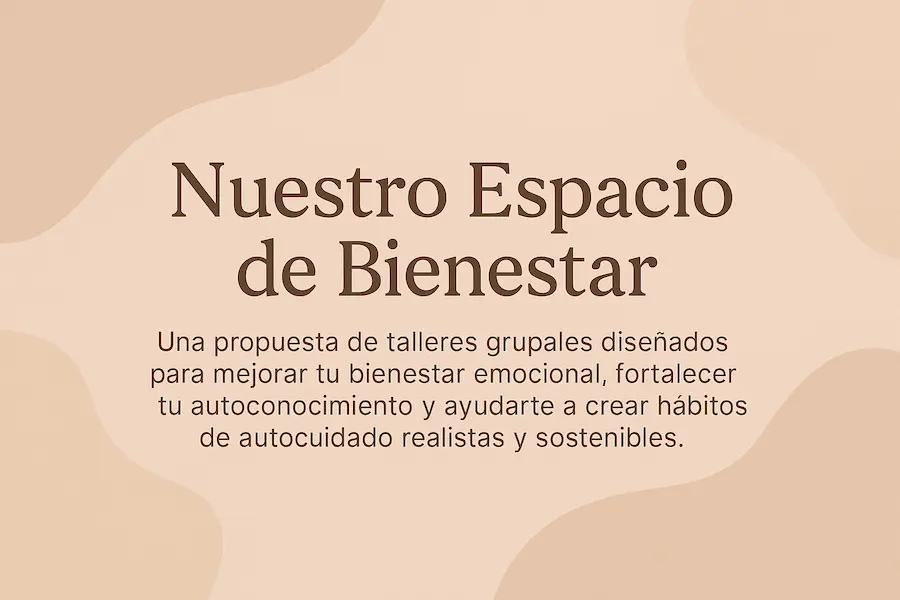 «Nuestro Espacio de Bienestar«, una propuesta de talleres grupales diseñados para mejorar tu bienestar emocional, fortalecer tu autoconocimiento y ayudarte a crear hábitos de autocuidado realistas y sostenibles. Talleres